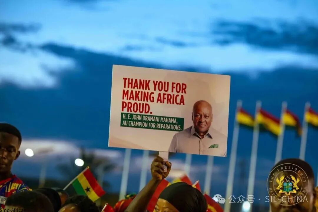 谈及加纳的领导力与历史传承,总统将此次成就置于加纳历史脉络中,指出加纳再次展现了国际舞台上的道义领导力。他将此刻与加纳自独立运动以来对正义与人尊严的长期承诺相联系 -- 作为非盟等重要合作伙伴,加纳在重塑全球历史责任话语体系方面始终发挥着核心作用。